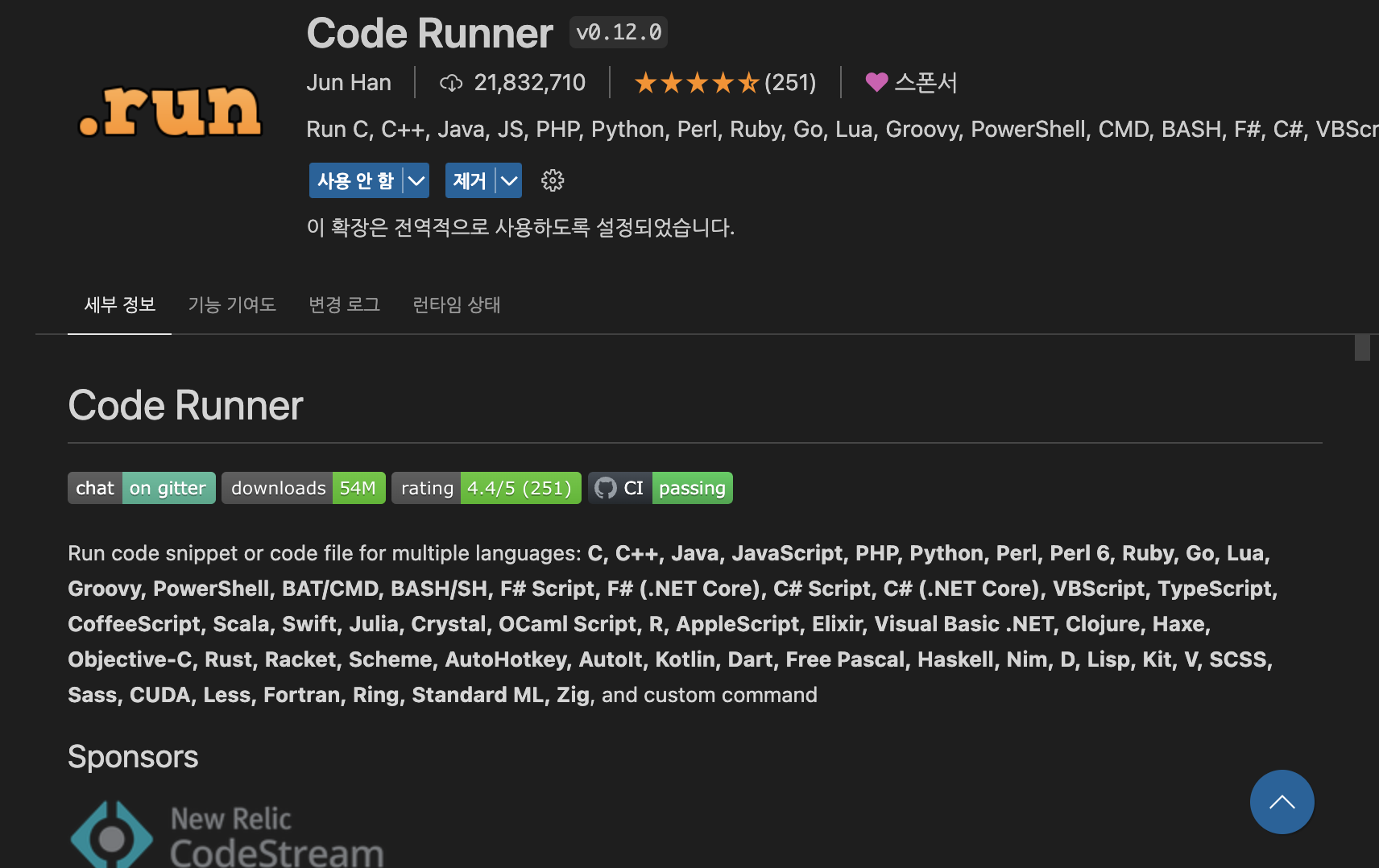 - 터치패드 2손가락으로 터치해서 run code 누르거나