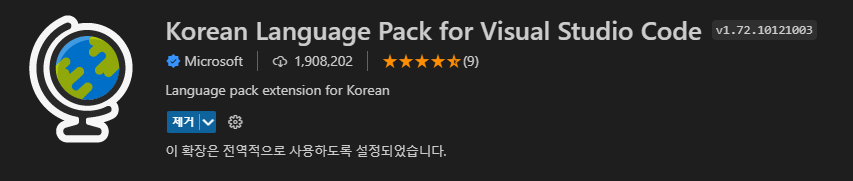 기본 언어가 영어로 설정돼 있는 vscode에 한글 확장팩을 설치하여 에디터를 쉽게 사용할 수 있도록 해준다.