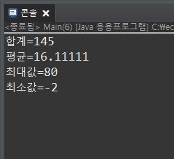 - for문으로 배열의 0번째 인덱스부터 length -1번까지의 모든 데이터를 참조하여 합계, 최댓값, 최솟값을 구한다.