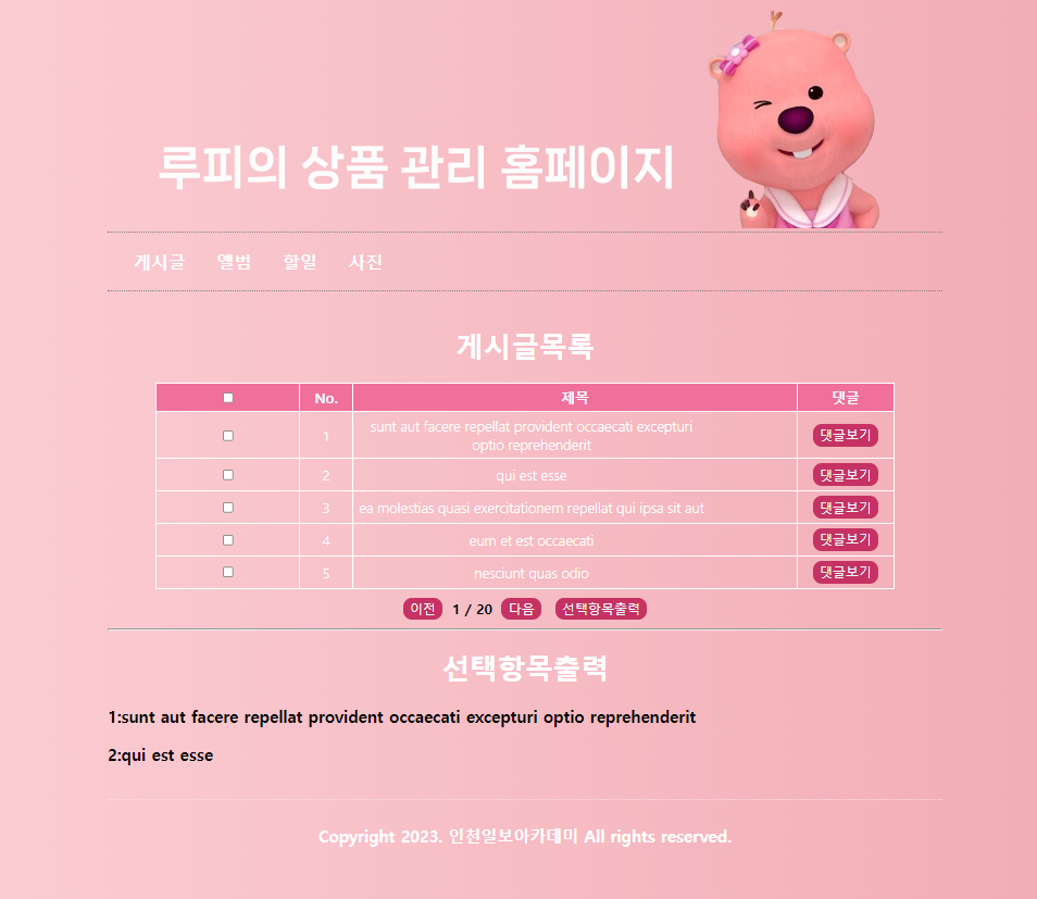 ※ 하단 출력공간은 댓글보기/선택항목출력 두 함수가 공통적으로 사용하는 공간이다.