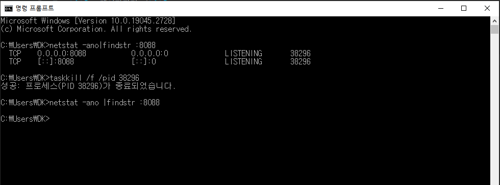 6 | npx kill-port 3000 | 서버 삭제 (또는 명령 프롬프트에 taskkill /f /pid 리스닝번호 입력) - 서버 끄지 않고 새로운 프로젝트 실행시 오류난다. - 해당 구문은 서버를 삭제하는 것이며 다시 실행할 때는 npm install로 새로 설치 |