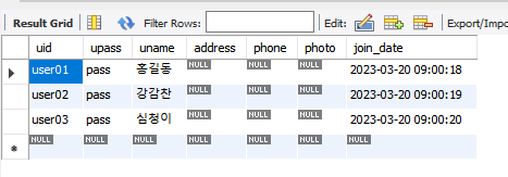 - select 구문으로 테이블의 데이터를 조회하면 아래와 같은 결과가 나온다.