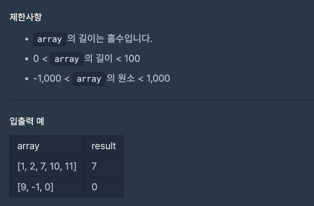 * 제한사항에 따라 배열의 크기는 홀수이다.