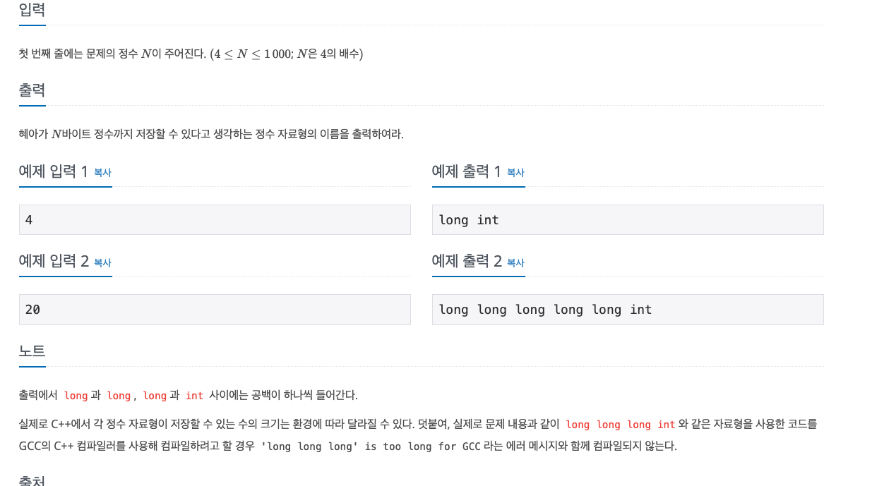 - 4 하나당 long을 출력하기 때문에 주어진 값/4한 값을 n 변수에 담아 n만큼 반복문 돌려 long출력
